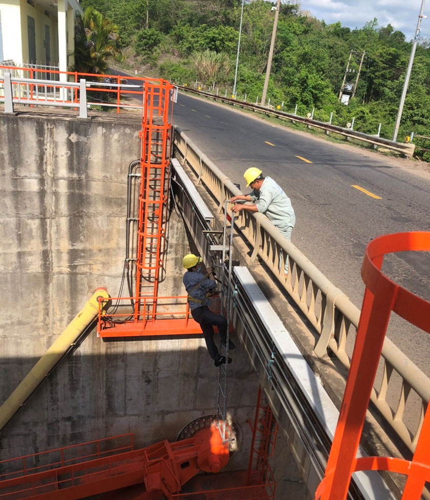 Công nhân NMKN thực hiện bảo trì, bảo dưỡng thiết bị tại đập tràn