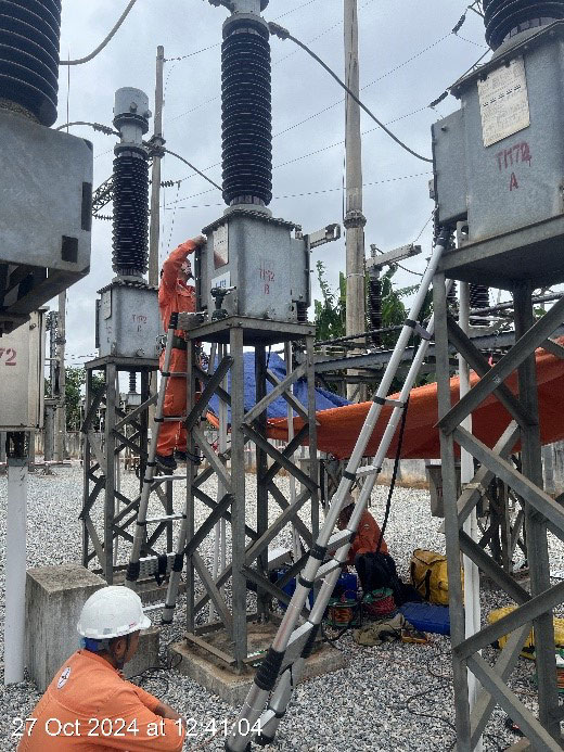 Ngày 27/10/2024, tại trạm biến áp 110 kV Ea Kar, SBA đã chủ trì tổ chức thực hiện công tác thí nghiệm/Kiểm định an toàn điện các thiết bị tại NXT 172 theo Qui định tại thông tư 33/2015/TT-BCT ngày 27/10/2015 của Bộ Công Thương. Khối lượng công việc thực hiện bao gồm toàn bộ các thiết bị điện nhất thứ 110 kV (TU, TI, máy cắt, dao cách ly, dao tiếp địa). SBA phối hợp với Đơn vị thí nghiệm là Công ty TNHH MTV Thí nghiệm điện miền Trung cùng với Đơn vị Quản lý vận hành lập phương án và tổ chức công việc phù hợp điều kiện thời tiết và kế hoạch phát điện của NMTĐ Krông H’năng.