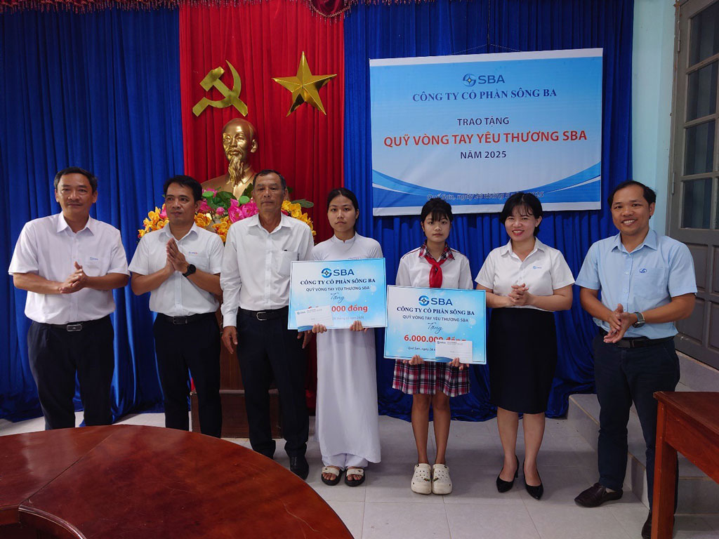 Ngày 26/5/2025, Công ty Cổ phần Sông Ba đã tổ chức trao học bổng từ quỹ “Vòng tay yêu thương SBA” cho các em học sinh mồ côi có hoàn cảnh khó khăn tại khu vực Nhà máy Thủy điện Khe Diên.