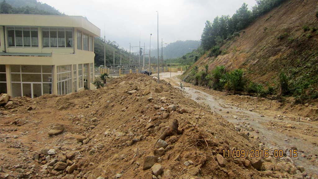 Đất, đá tràn vào Nhà máy sau đợt lũ ngày 01÷ 03/11/2016