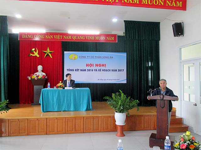 Công ty Cổ phần Sông Ba (SBA) đã tổ chức Hội nghị tổng kết năm 2016 và kế hoạch năm 2017 vào sáng ngày 06/01/2017 tại hội trường Công ty - 573 Núi Thành, TP. Đà Nẵng. Về dự Hội nghị có sự hiện diện của Ông Nguyễn Thành - Phó Tổng Giám đốc Tổng công ty Điện lực miền Trung - Chủ tịch Hội đồng quản trị (HĐQT); Ông Trần Đình Hà - Phó Chủ tịch Công đoàn Tổng công ty Điện lực miền Trung; Ông Thái Văn Thắng - Phó Chủ tịch HĐQT, Ông Phạm Phong - Thành viên HĐQT, Tổng Giám đốc Công ty, Ông Nguyễn Lương Mính - Thành viên HĐQT, Ông Trương Thành Nam - Thành viên HĐQT, Bà Phan Thị Anh Đào - Trưởng Ban Kiểm soát; Trưởng và Phó các đơn vị, Giám đốc, Phó giám đốc các chi nhánh và CBNV Công ty. Ông Phạm Phong - Thành viên HĐQT, Tổng Giám đốc Công ty chủ trì Hội nghị.