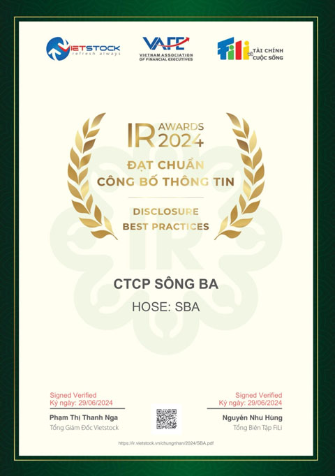Đây là lần thứ 7 liên tiếp, SBA được đánh giá đạt chuẩn và thực hiện tốt công bố thông tin kịp thời tình hình hoạt động Công ty đến Cổ đông, nhà đầu tư, tuân thủ đúng và đầy đủ về nghĩa vụ về CBTT theo quy định trên TTCK Việt Nam thông qua Website của Công ty, UBCKNN và HoSE. Điều này càng khẳng định hoạt động IR (Investor Relation) của Công ty trên TTCK luôn hướng đến sự minh bạch, kịp thời và hiệu quả.