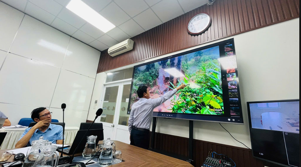 Giám đốc TTTV&KĐ an toàn đập trình bày phương án gia cố tạm sạt lở tại nhà máy Khe Diên do đợt mưa lũ tháng 10/2025 để đề phòng mưa lũ từ cơn bão số 13