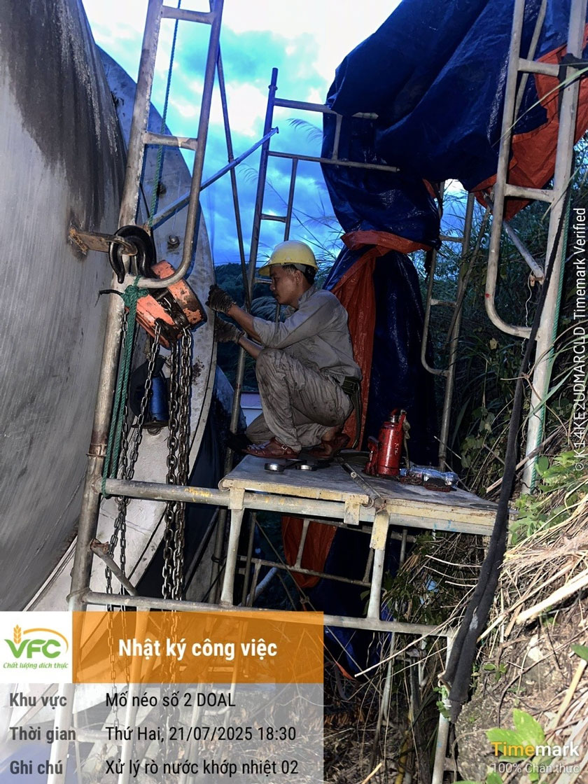 Nhân viên sửa chữa NMKN thực hiện thay thế gioăng làm kín khớp nhiệt số 02