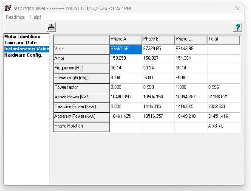 Thông số mạch qua công tơ (trước và sau kiểm định)