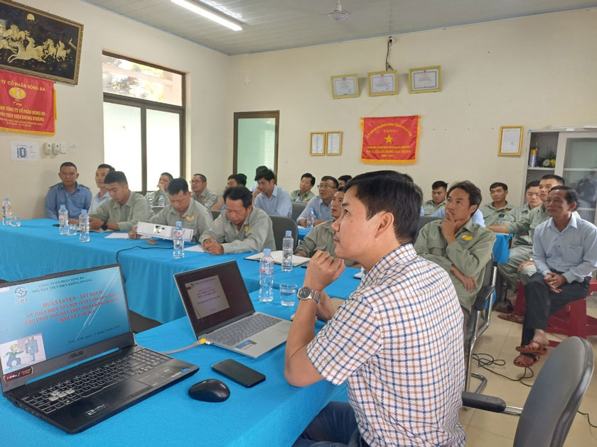 Theo kế hoạch được duyệt ngay từ đầu năm, Công ty cổ phần Sông Ba đã tổ chức bồi huấn An toàn điện, thủy, cơ, nhiệt, hóa, kết hợp tuyên truyền ATGT, đồng thời tổ chức diễn tập thao tác, xử lý sự cố thiết bị, diễn tập phòng cháy chữa cháy định kỳ cho CBNV trực tiếp sản xuất tại NMTĐ Khe Diên, NMTĐ Krông H’năng trong tháng 3/2024.