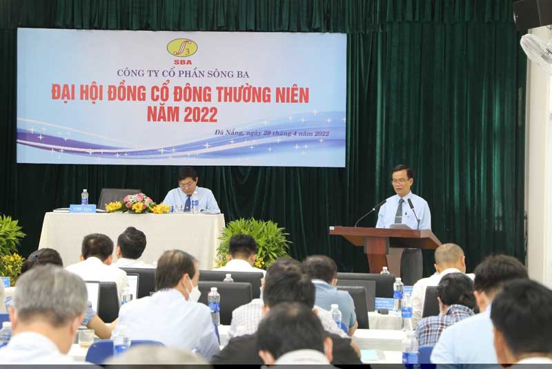 Ngày 29/04/2022 tại Hội trường Công ty Cổ phần Sông Ba (SBA) - 573 Núi Thành, TP Đà Nẵng; SBA đã tổ chức phiên họp Đại hội đồng cổ đông thường niên năm 2022. Về dự phiên họp, có sự hiện diện của 50 cổ đông và đại diện theo ủy quyền, đạt 63,92% cổ phần có quyền biểu quyết.
