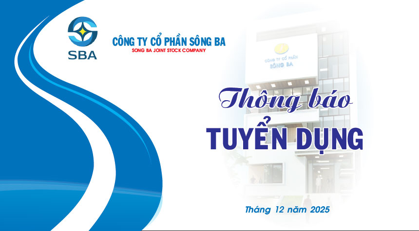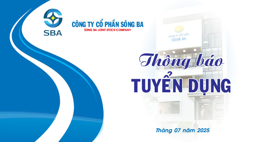 Công ty Cổ phần Sông Ba (SBA) có vốn điều lệ 604,8 tỷ đồng, Công ty hoạt động chính trong lĩnh vực quản lý vận hành các Nhà máy thủy điện và Dịch vụ tư vấn cho các Công trình Thủy lợi - Thủy điện. Hiện tại, Công ty đang quản lý vận hành 02 nhà máy thủy điện: Khe Diên (15MW) tại tỉnh Quảng Nam, Krông H’năng (64 MW) tại 02 tỉnh Phú Yên, Đăk Lăk và thực hiện các Dịch vụ tư vấn cho các Công trình thủy lợi - Thủy điện khu vực miền Trung – Tây Nguyên. Để bổ sung nhân sự cho Công ty, SBA có nhu cầu tuyển dụng lao động với nội dung cụ thể như sau:
