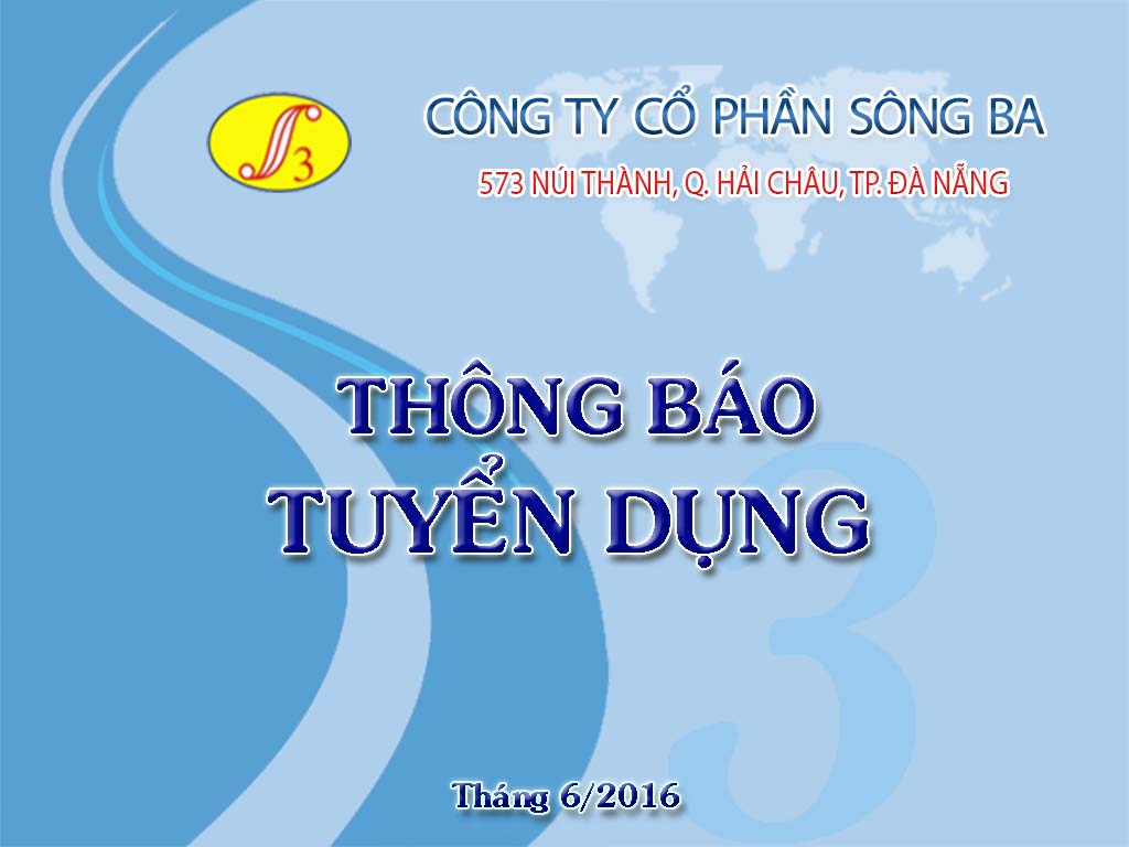 Căn cứ kết quả tuyển dụng Kỹ sư Xây dựng Thủy lợi - Thủy điện đợt 3 năm 2016 tổ chức vào ngày 19 và 21/07/2016 tại Văn phòng Công ty Cổ phần Sông Ba. Công ty thông báo các thí sinh được tuyển dụng như sau: